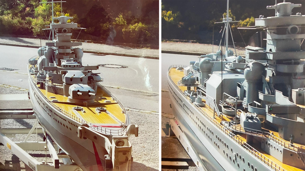 Ein beeindruckendes 5m Modell des deutschen Schweren Kreuzers Blücher (1939) wird auf der Modellbaumesse ausgestellt.